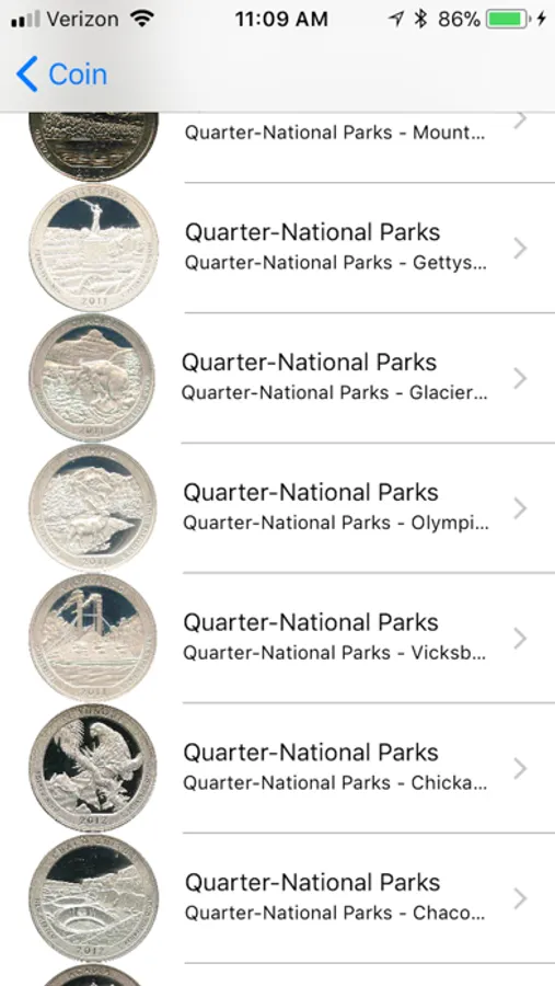 The user may also search for a type containing particular words such as eagle, half dollar, etc.