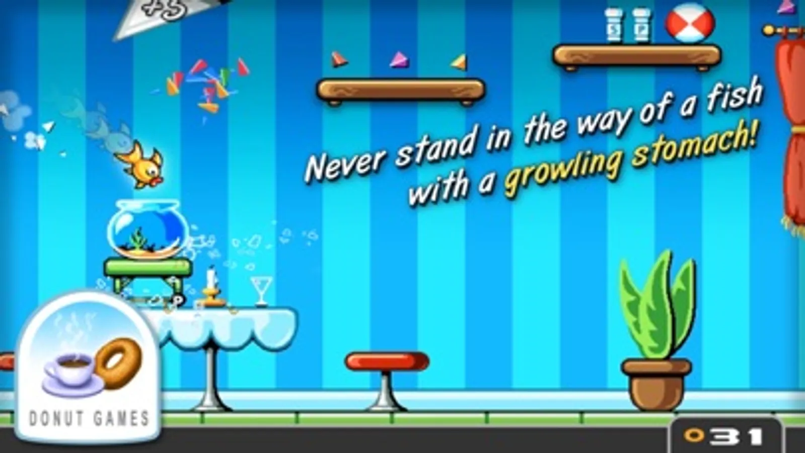 Control a fishbowl on top of a JOLTING CART, and a starving GOLDFISH trying to snatch fish food from the shelves, both at the same time!