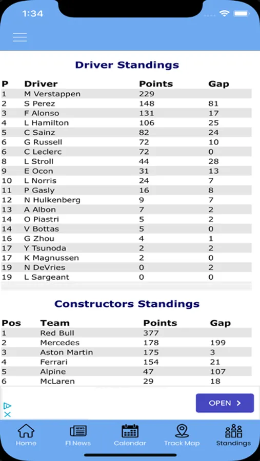 - Latest standings for drivers, constructors, poles, wins, head-head, penalty points & more