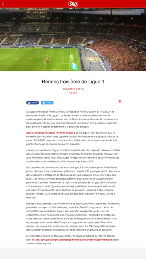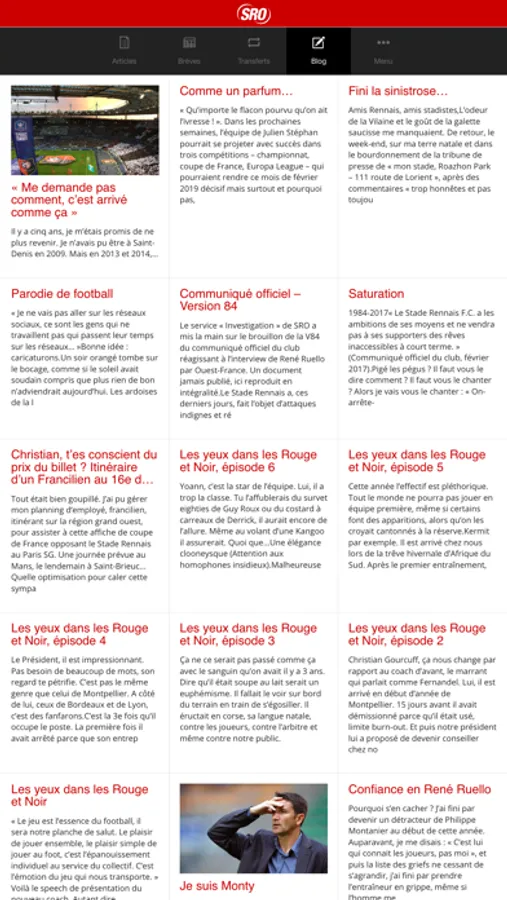 Stade Rennais Online est le premier site indépendant d'information sur le Stade Rennais Football Club. Téléchargez gratuitement notre application iPhone et iPad pour retrouver toute l'actualité du SRFC en direct et ne manquer aucune information ou résultat où que vous soyez.