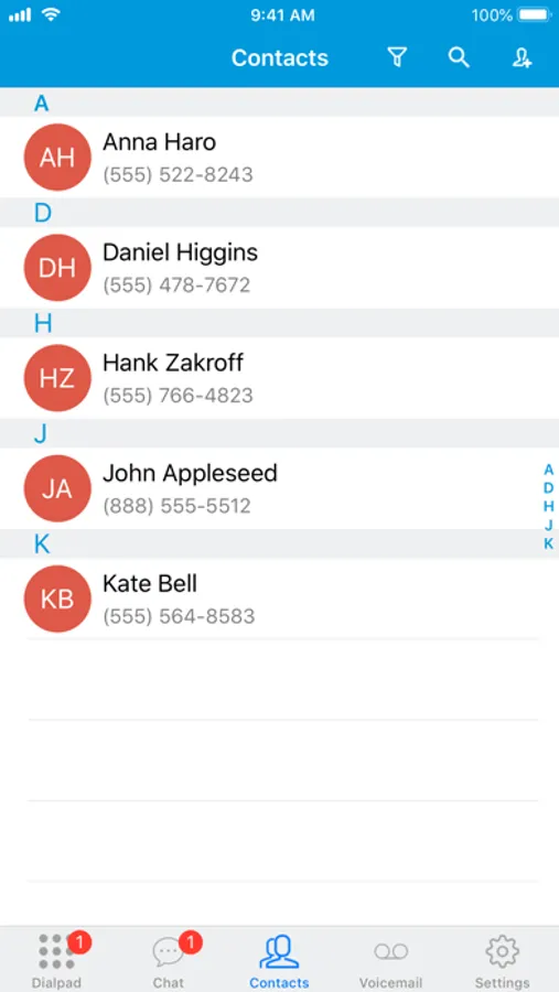 ◦ Access your Crexendo contacts, voicemails and calls logs from within the app.