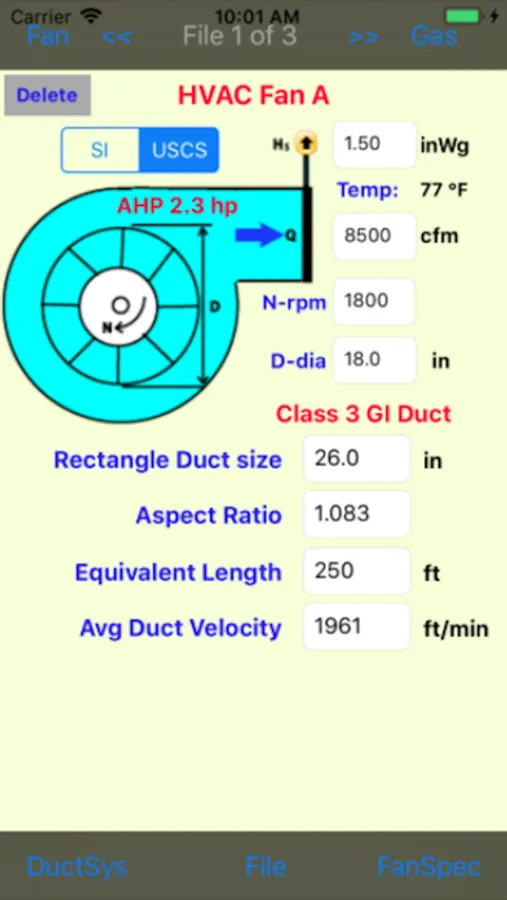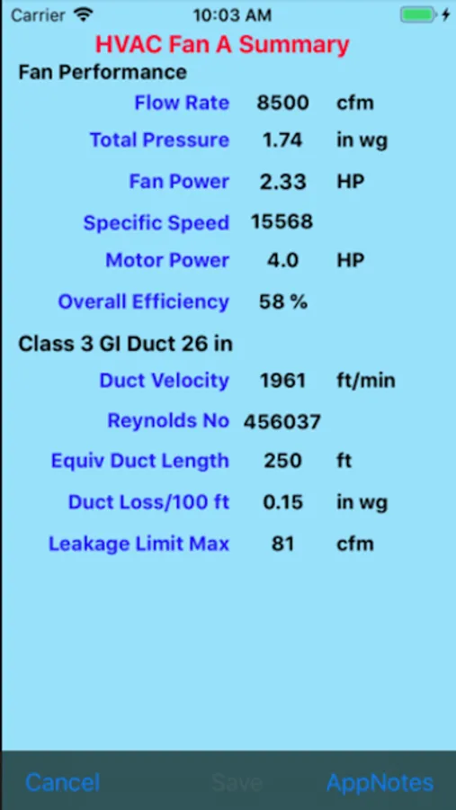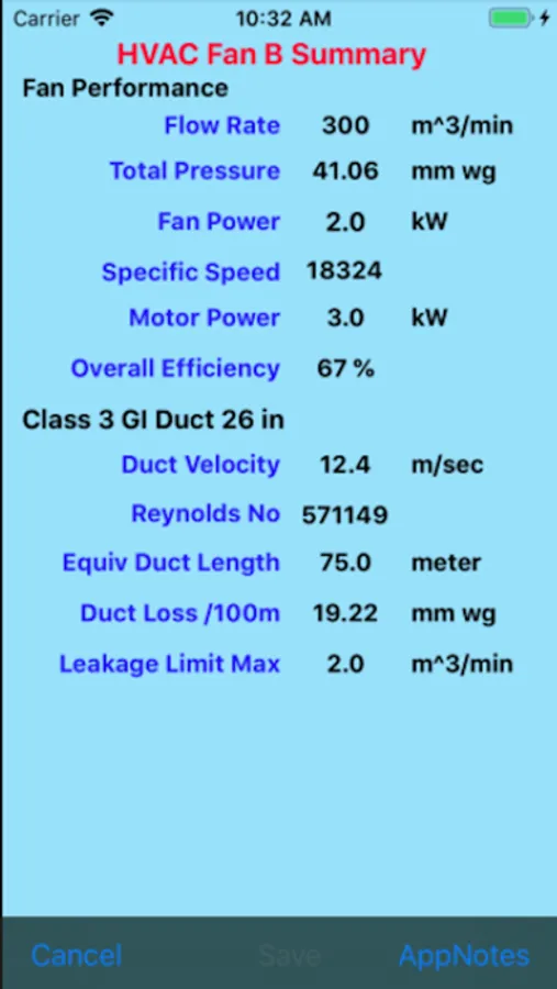 FanSpec helps to evaluate different fan specification for a given application based performance characteristics such as flow rate, static pressure, shaft power, and fan efficiency. It also determines the average duct velocity duct pressure loss and duct leakage rates that are very critical to satisfactory performance and energy efficiency. Users can create multiple applications of fan-duct system and then save it in a file for evaluation and review.