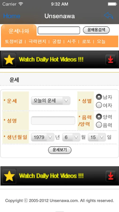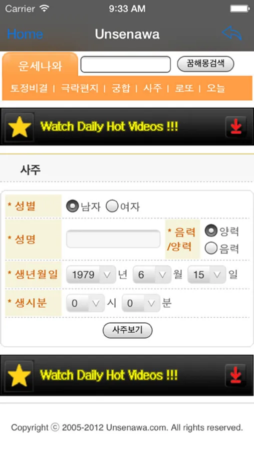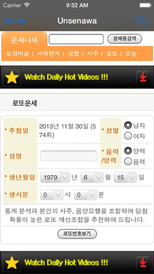- 로또운세 : 통계 분석과 본인의 사주, 음양오행을 조합하여 당첨 확률이 높은 로또 번호를 생성하여 드립니다.