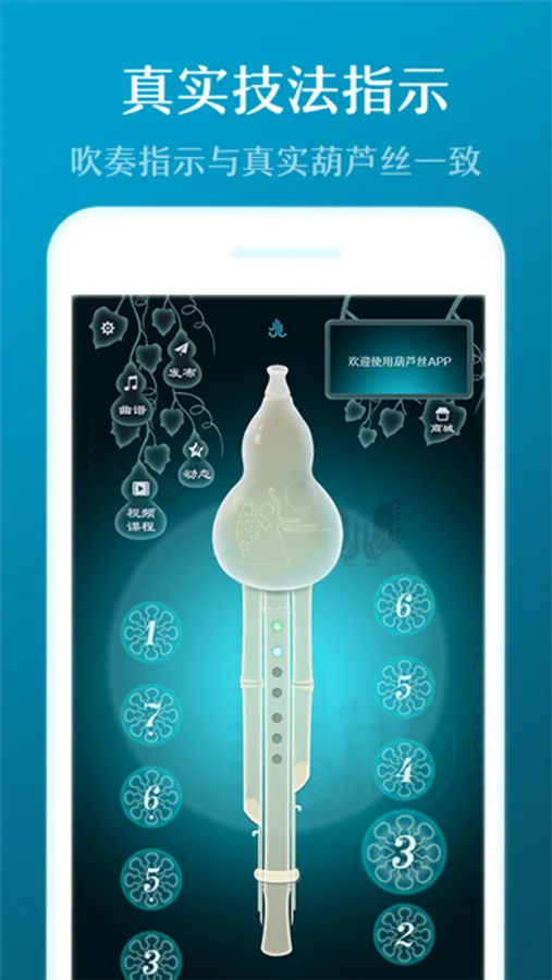 葫芦丝是简单的民族乐器之一,让葫芦丝成为您的启蒙乐器,手机就能演奏葫芦丝。跟着APP,短时间学会《沧海一声笑》、《青花瓷》等入门歌曲。