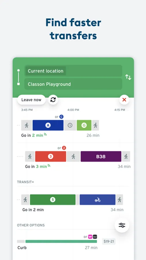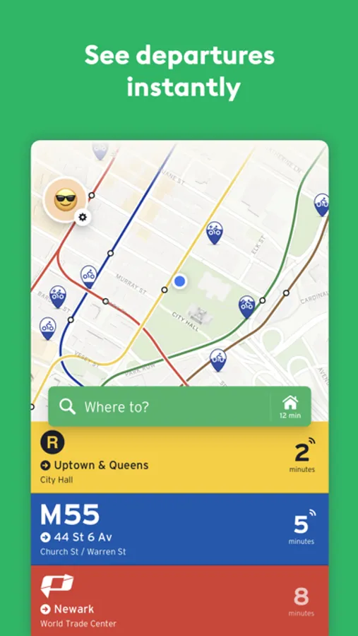 The app uses the best transit agency data sources like MTA Bus Time, MTA Train Time, NJ Transit MyBus, SF MUNI Next Bus, CTA Bus Tracker, WMATA Next Arrivals, SEPTA Real-Time and many more. We combine that data with our fancy ETA prediction engine so that you get the most accurate real-time info possible for all transit modes - including buses, subways, trains, streetcars, metros, ferries, ridehail and more. Prefer to travel on two wheels? With GPS, you can see live bikeshare and scooter locations right on the map.