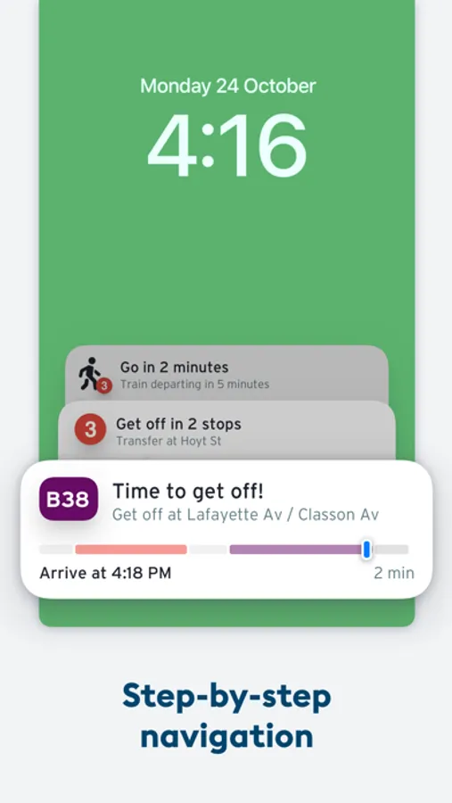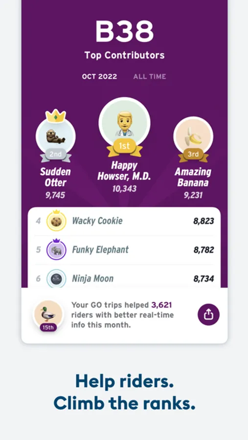 Receive departure alarms to catch your bus or train, and get alerted when it’s time to get off or transfer. When using GO, you’ll also crowdsource more accurate info and real-time ETAs for other passengers– and rack up points and thank yous for being the most helpful rider on your line.