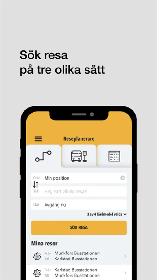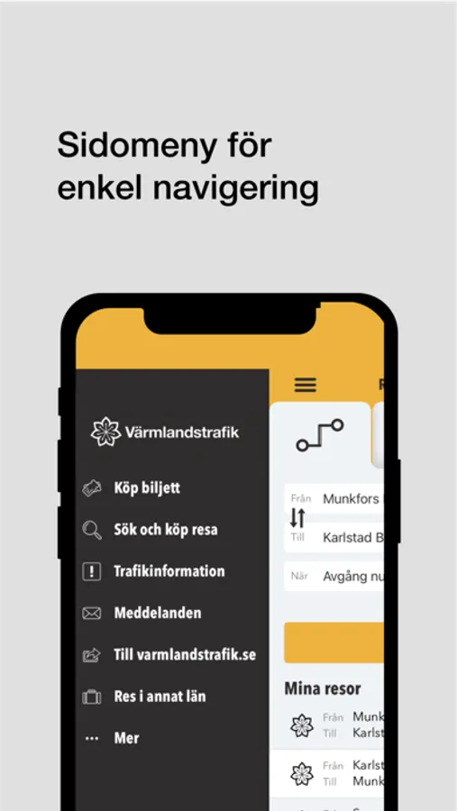 App för att söka och köpa resa med buss och tåg i Värmlandstrafik.
