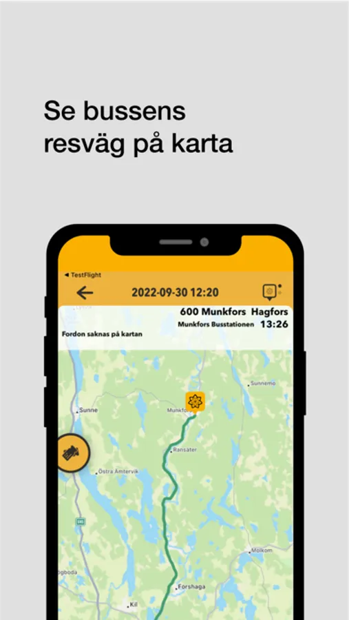 Realtidskarta visar bussens position på karta. Tjänsten besvarar den klassiska frågan "Var är bussen?" och fungerar som en guide före och under resan.