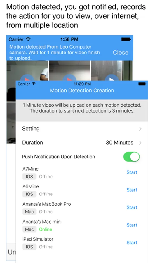 * Detect motion in front of Mac webcam, and record the activity, and notify IOS client.