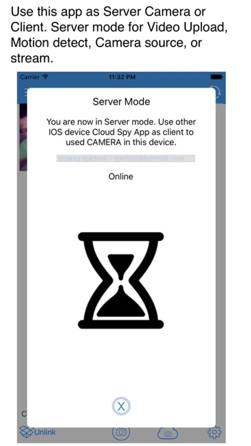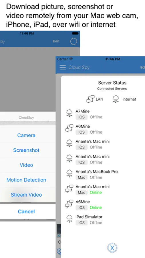 Optional Mac server software called "Cloud Spy Svr", and please download from Mac App store, if you want to use your Mac computer as server camera or as Client at the same time.