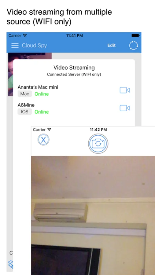 * Using "Cloud Spy" you can easily access your Mac Camera, iPhone, or iPad as server camera capture it, and display it in your iPhone, iPad.