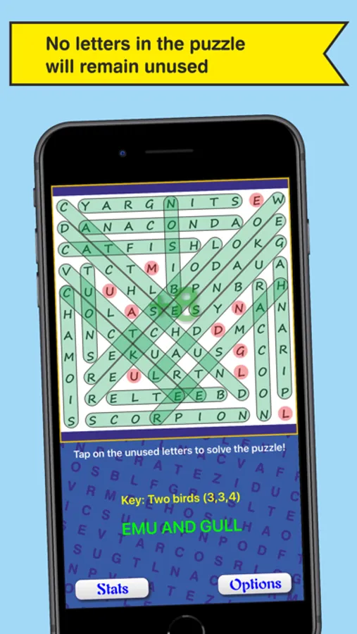 - Built-in word search generator with fun key sentence to solve upon puzzle completion.