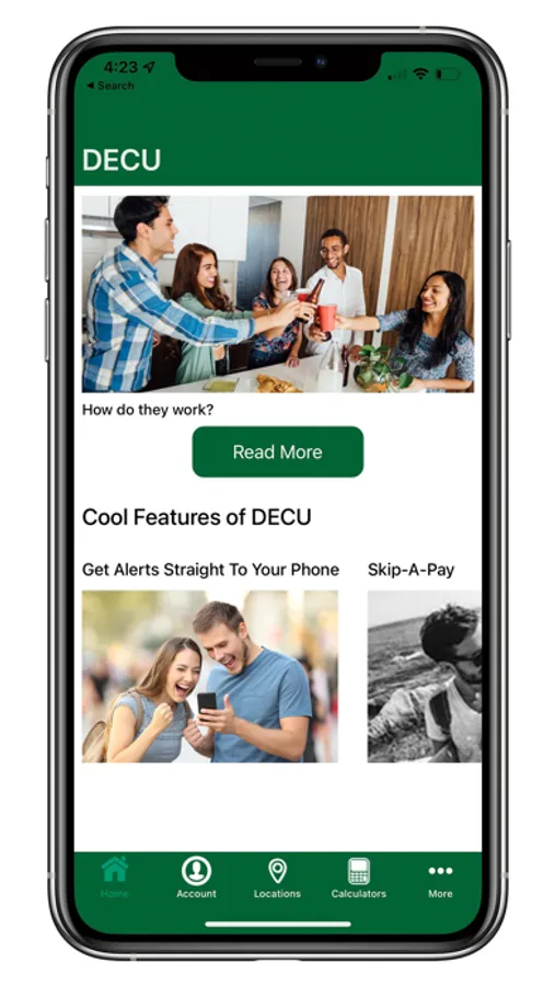 Carry your credit union with you wherever you go. Our mobile app provides fast and secure access to your accounts at your convenience. This mobile version of our website will help you find a DECU branch or ATM, check on savings and loan rates, keep up with our latest promotions, calculate loan payments, as well as do your online banking.