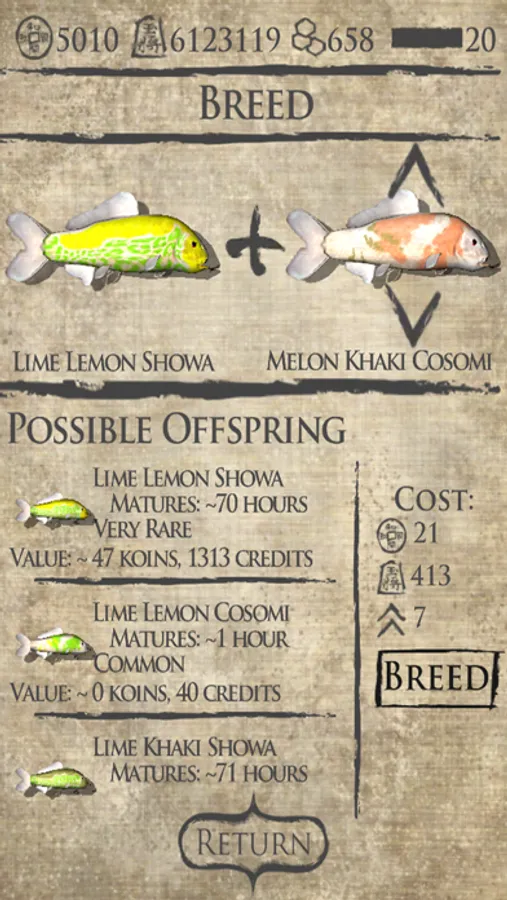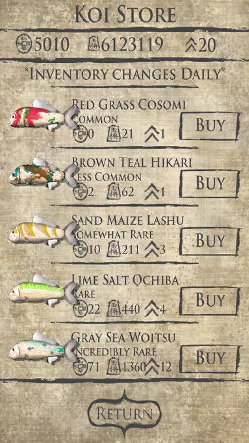 Raise, feed, breed, play with, and sell thousands of different kinds of koi. Decorate your pond and make it beautiful!