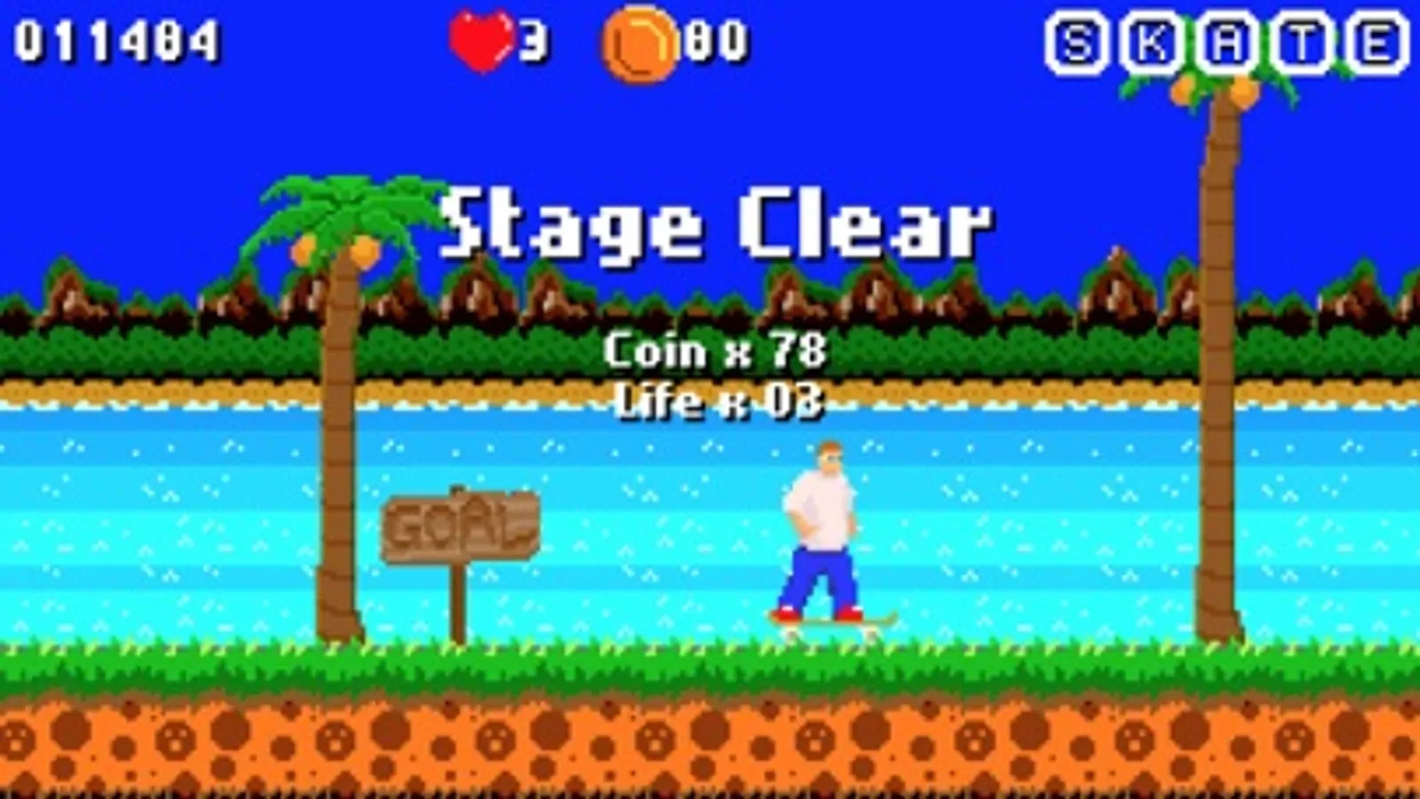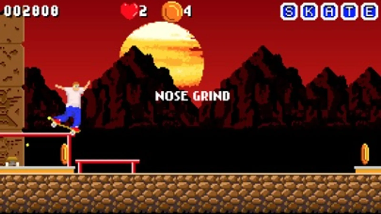 The game consists of five regular stages plus one special stage, and the player can only go on to the special stage after collecting the letters 'S', 'K', 'A', 'T', and 'E' on the previous five stages. By obtaining each letter, the skater gains the ability to do a new trick or improve ollie.