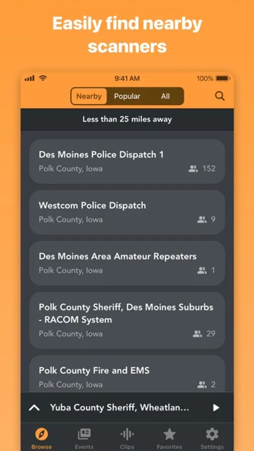 Turn on notifications to receive alerts anytime a scanner has more than 2000 listeners (find out about major events as they're breaking).