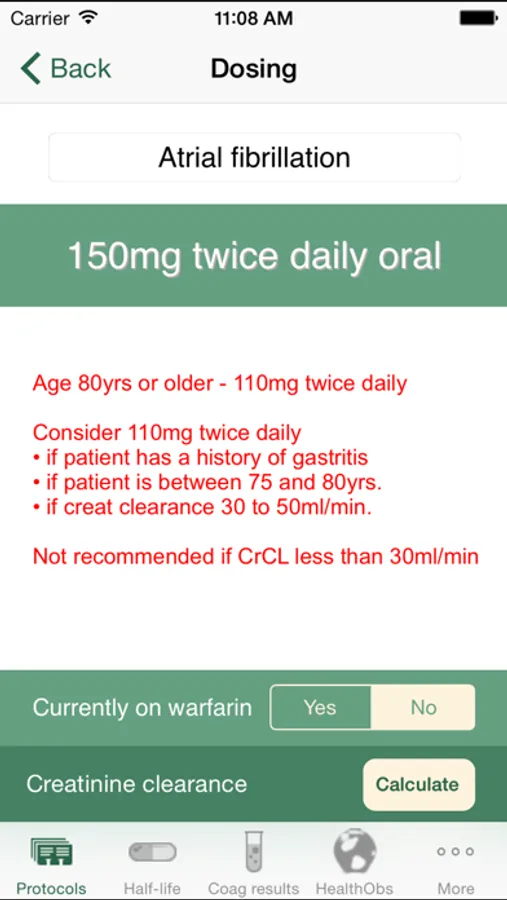 The Dabigatran App provides the correct dose for each indication with advice about possible dose changes in the presence of renal impairment