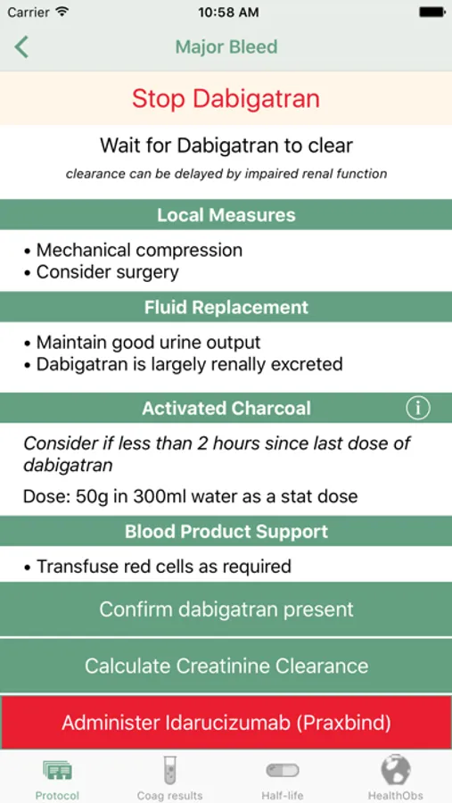 Bleeding is a potential problem with any anticoagulant and can be complex to manage. The Dabigatran App provides advice about which treatments to use for both minor and major bleeding including when to use idarucizumab (Praxbind)