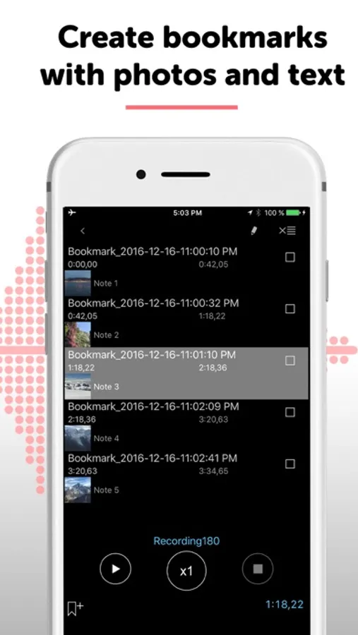• Sync audio recordings, audio bookmarks and preferences with iCloud