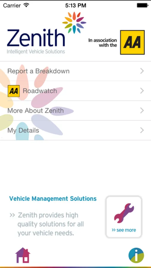 • Zenith Breakdown – the App finds your exact location on a street level map. Information about your location is sent to Zenith when you call, helping us to locate you quickly.