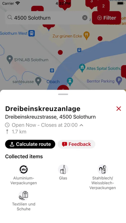 The Recycling Map shows you more than 16,000 Swiss collection points at a glance. In addition to showing your nearest collection points, the interactive map also provides information about the precise location, its opening hours and the materials that are accepted.