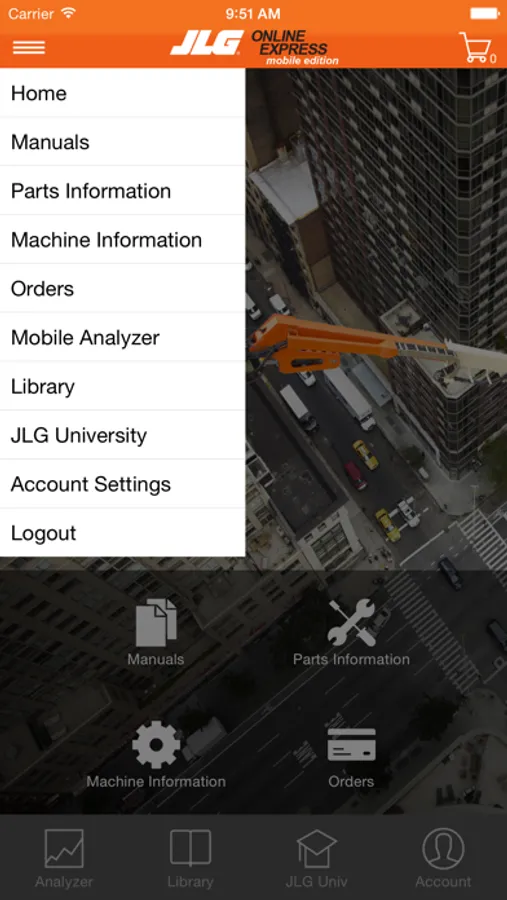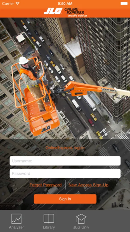 A JLG Online Express username is required to access the app. If you are a JLG account holder and do not have an Online Express username, please go to http://onlineexpress2.jlg.com to sign up.