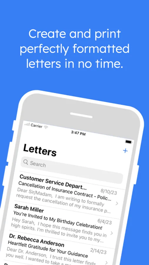 Streamline your communication with the Letter app. Effortlessly generate, share, and print letters that strike a harmonious balance between simplicity and elegance.