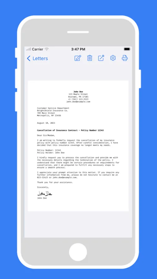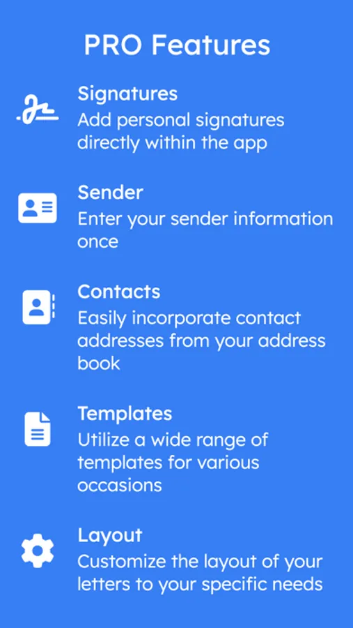 • Personalized signatures: Infuse your letters with a personal flair by directly signing them within the app.