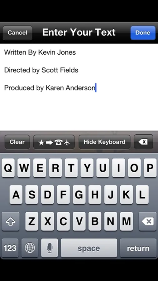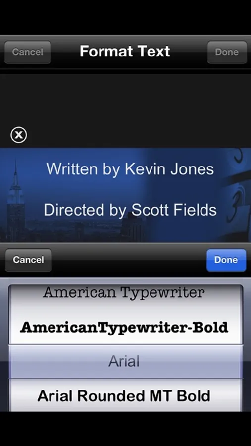 4. Format your credits by adjusting the font color, size, style, etc. with multitouch gestures (pinch to resize) and the buttons along the bottom.