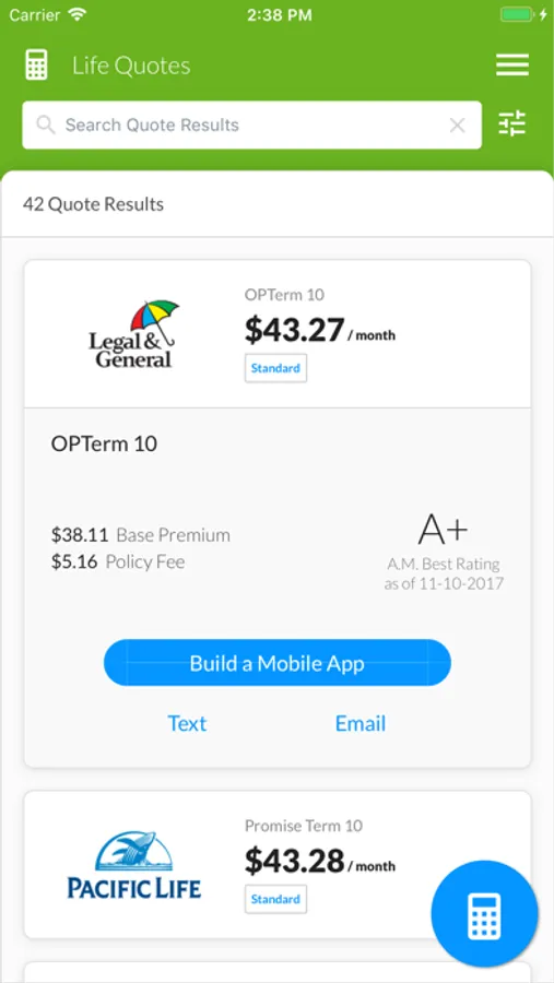 Finally, an app that delivers quote comparisons for over 100+ life insurance carriers! Quotes are available for all 50 States.