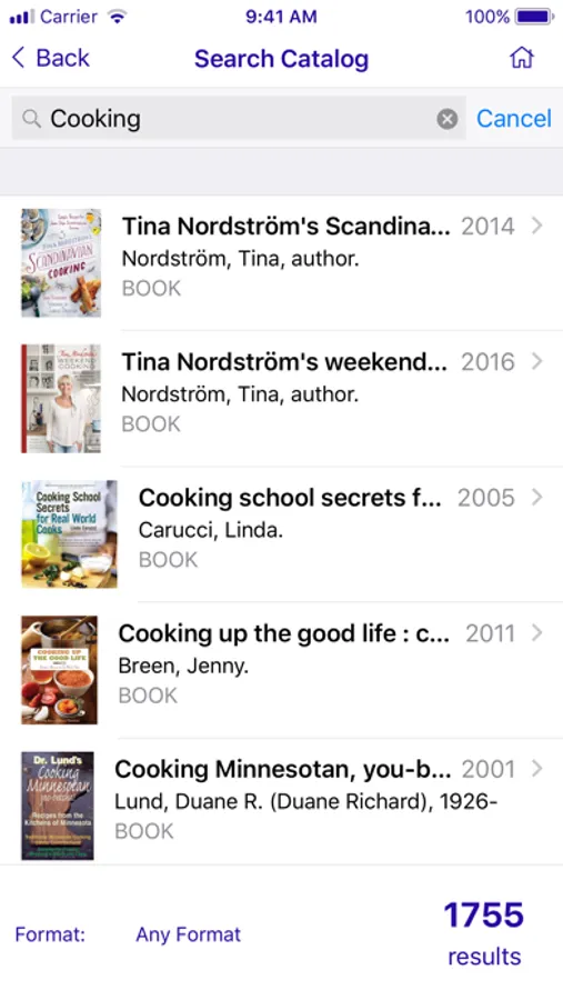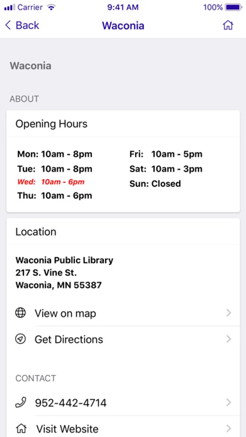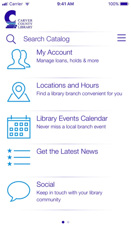 You can access Carver County Library services from your smartphone with our free mobile application. With the Library’s app you can search the catalog, find library locations and hours, and check the calendar for events and classes. You can also access your account features such as renewing and reserving items.