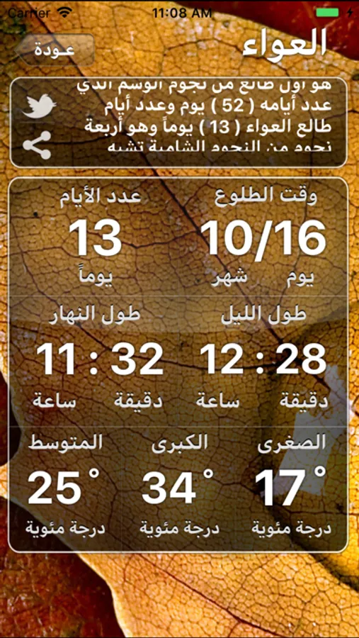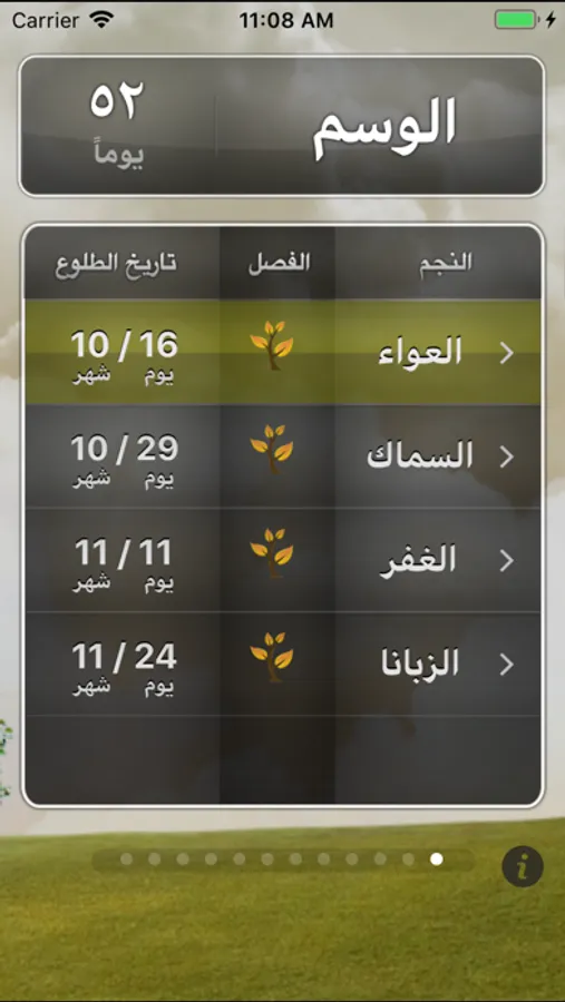 برنامج دليل النجوم يخبرك عن طوالع النجوم في الجزيرة العربية، وعن طريق الاشعارات يخبرك عن دخول النجوم، ويقدم تفاصيل دقيقة عن أحوال الطقس والأمطار والربيع وهجرة الطيور والحيوانات البرية وكذلك الزراعة والحصاد لكل نجم.
