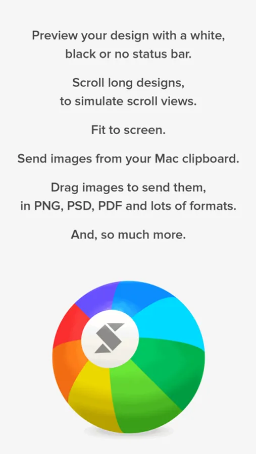 Skala Preview sends lossless, colour accurate image previews to any iOS device. Previews are pixel perfect. Colours are identical to how the final app or website will look on the device.