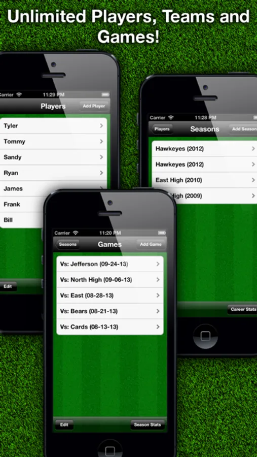 -Track an unlimited number of players by careers, seasons and games, over any number of teams.