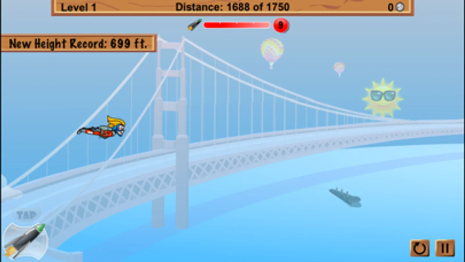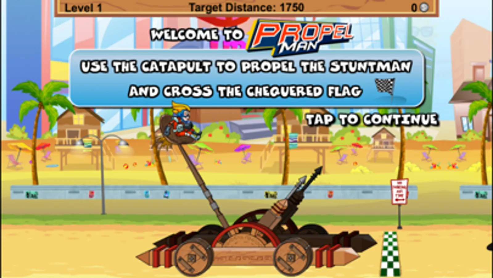 Use the Catapult to dispatch the Propel Man to dizzy heights in the sky and cross each level by landing safely past the finish line by deploying your parachute.
