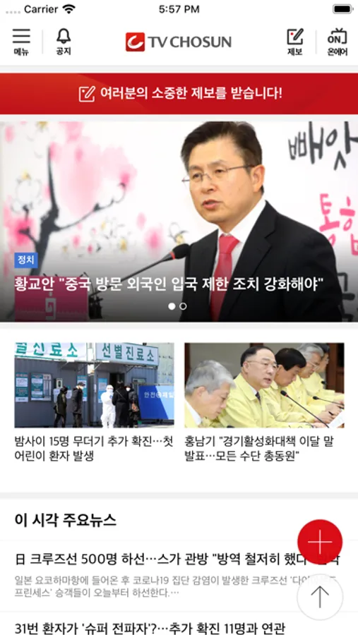 1. 뉴스 홈: 홈 화면에서 편리하게 주요 뉴스를 확인할 수 있으며, 플로팅 버튼을 통해 온에어, 편성표, 뉴스 제보에 쉽게 이동할 수 있습니다.