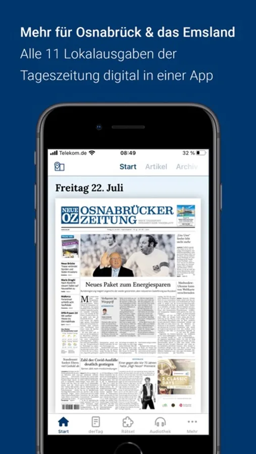 Ihre lokale Tageszeitung optimiert auf dem iPad und iPhone: Die Tageszeitung des folgenden Tages steht Ihnen in der noz E-Paper App bereits ab 20 Uhr zur Verfügung. Die noz E-Paper App – Nachrichten für Osnabrück und das Emsland.