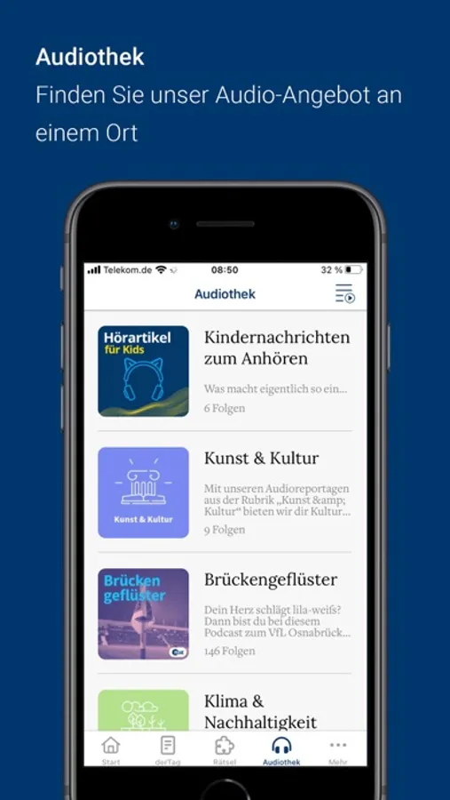 + Audiothek direkt in der App mit Podcasts und Hörartikeln