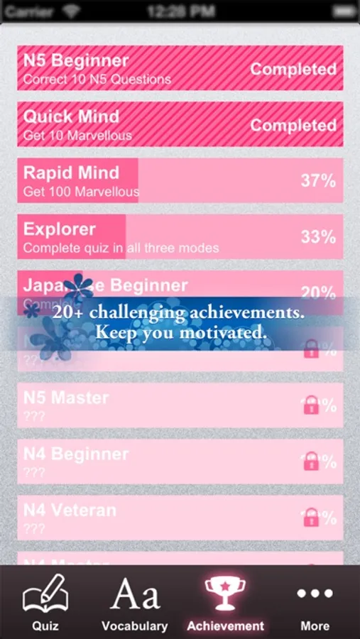 An innovative and intelligent quiz system which conditionally choose quiz vocabulary according to your quiz history. Each vocabulary has its own 4-level star rating which affects their pick up chances in Quiz.
