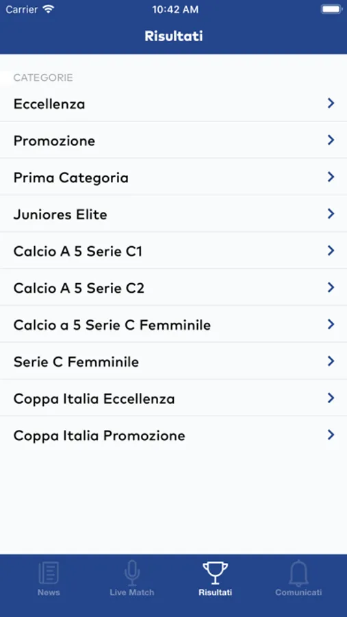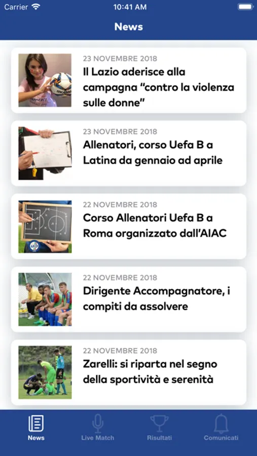 Nella sezione Comunicati saranno visibili e scaricabili tutti i Comunicati Ufficiali regionali e provinciali del Cr Lazio. Suddivisi in un comodo menù tra Regionali e Provinciali, Dilettanti e Settore Giovanile, tutte le comunicazioni ufficiali e le decisioni della giustizia sportiva saranno a portata di click.