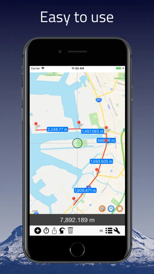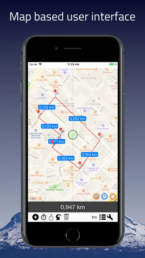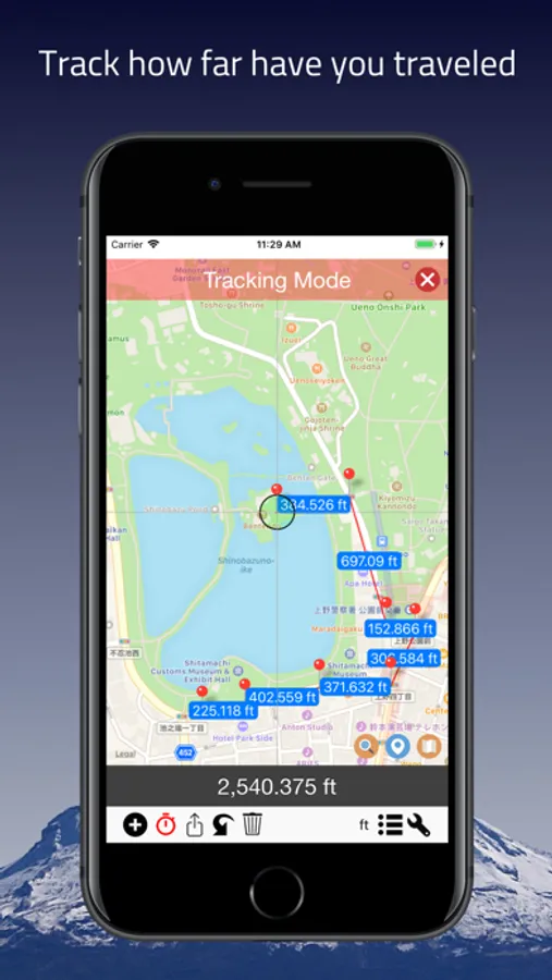 You can use your device's GPS feature to measure distance on the go by pressing timer button on the toolbar to begin the measurement.
