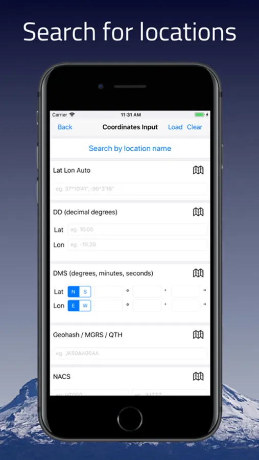 In addition to the simple search tool, you can search by various formats of coordinates including MGRS, GARS, UTM, and many more. Searching by location is also available. You can input the location name or import the location from GPS tag within a photo.