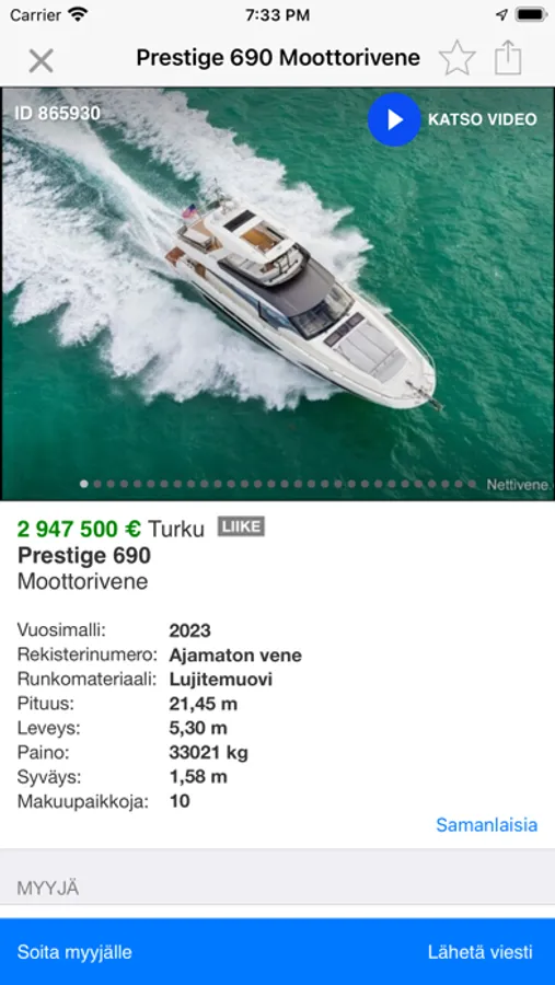 • Merkkaa vene myydyksi