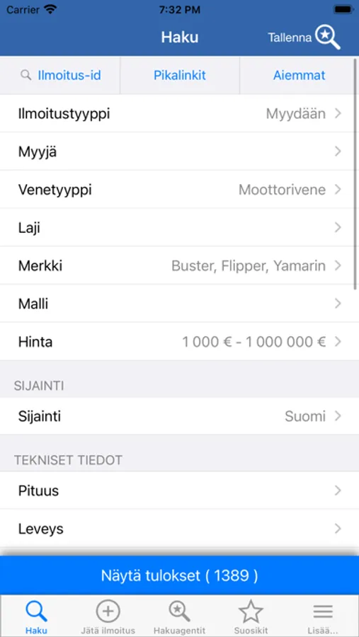 • Tallenna hakujasi ja selaile näppärästi kriteerejäsi vastaavia kohteita