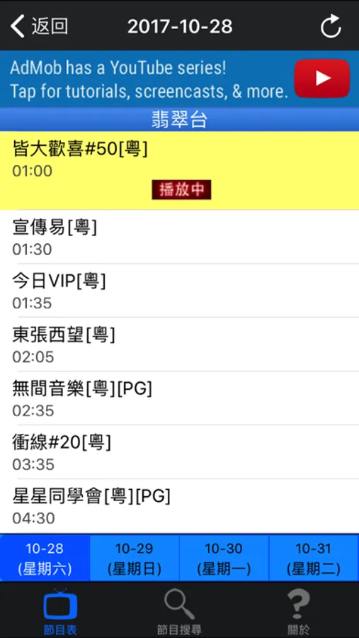 - 顯示各頻道播放中的節目