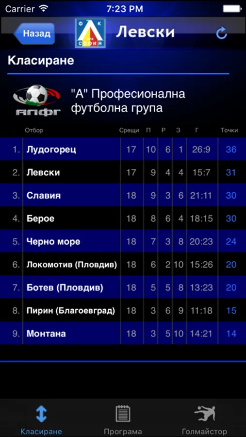 Актуални спортни новини за ПФК Левски София. Резултати на живо, анализи, статистика. Видео и фотогалерия от спортни събития на отбора. Отбор и история.