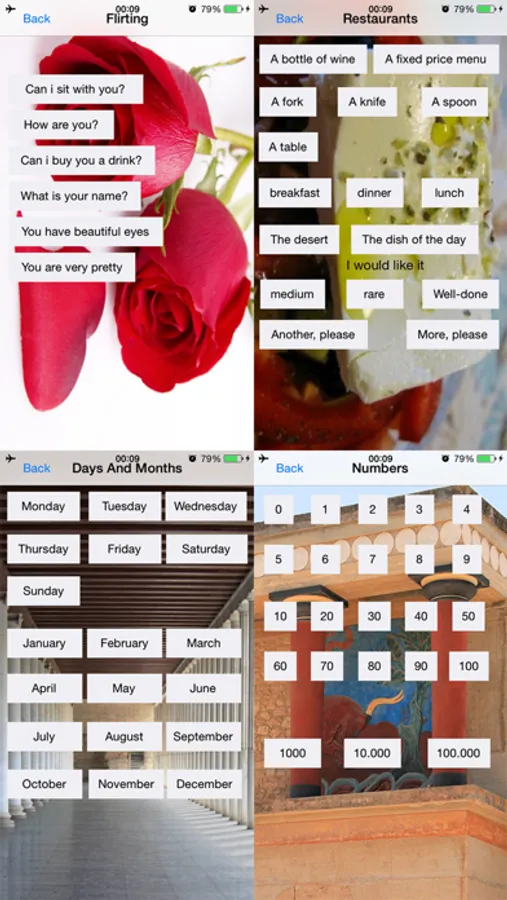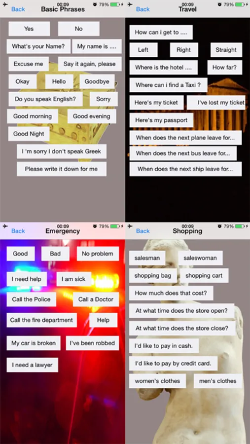 Now you will have all the basic phrases for any occasion. More than 100 phrase for travel, eating, shopping and more in this app.