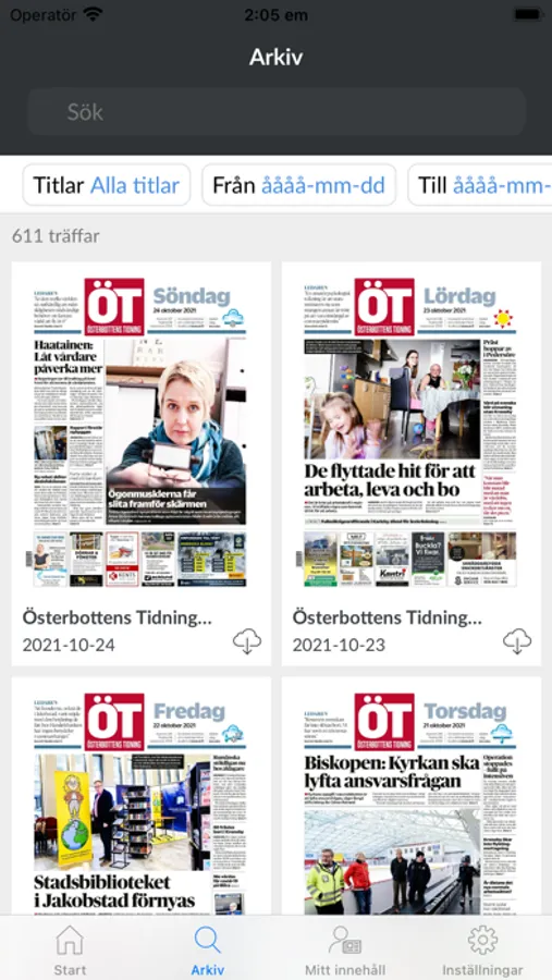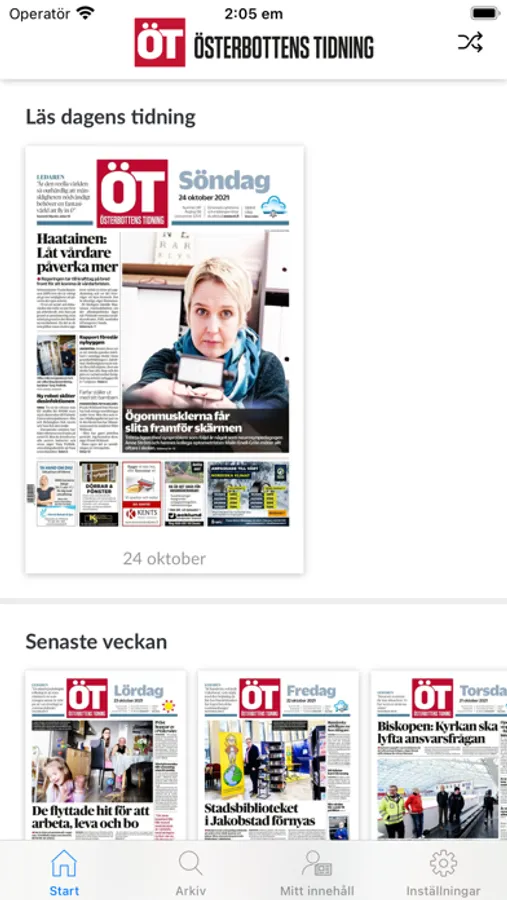 I Österbottens Tidnings app kan du läsa e-tidningen som utkommer veckans alla dagar – även på måndagar! E-tidningen ÖT Måndag utkommer endast digitalt och är exklusivt utformad för att läsas i appen.