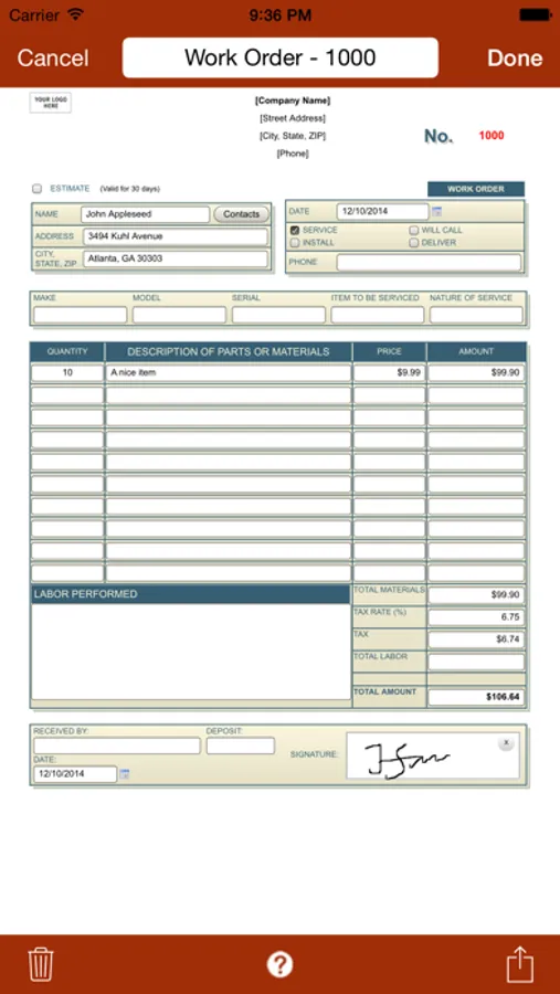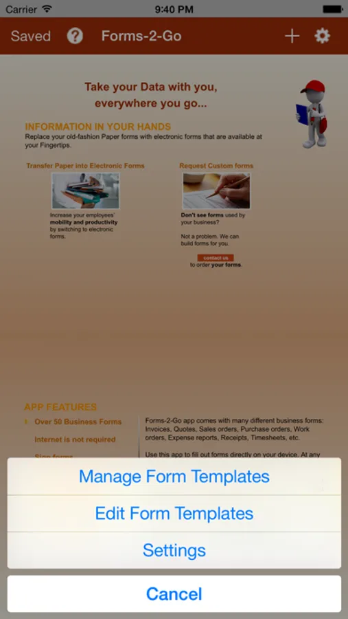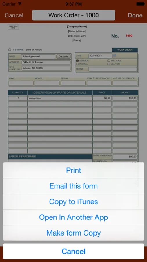 - Pre-build forms can be customized with your Company name, logo, address and contact information (requires in-app purchase).