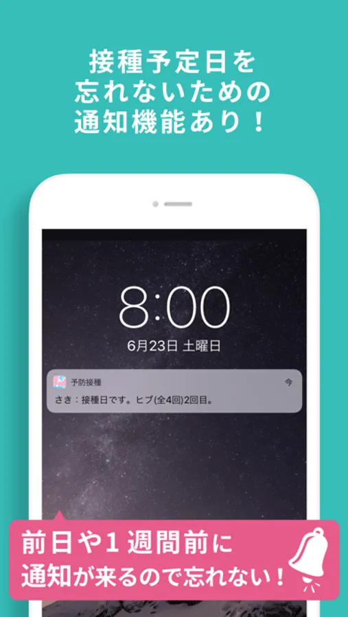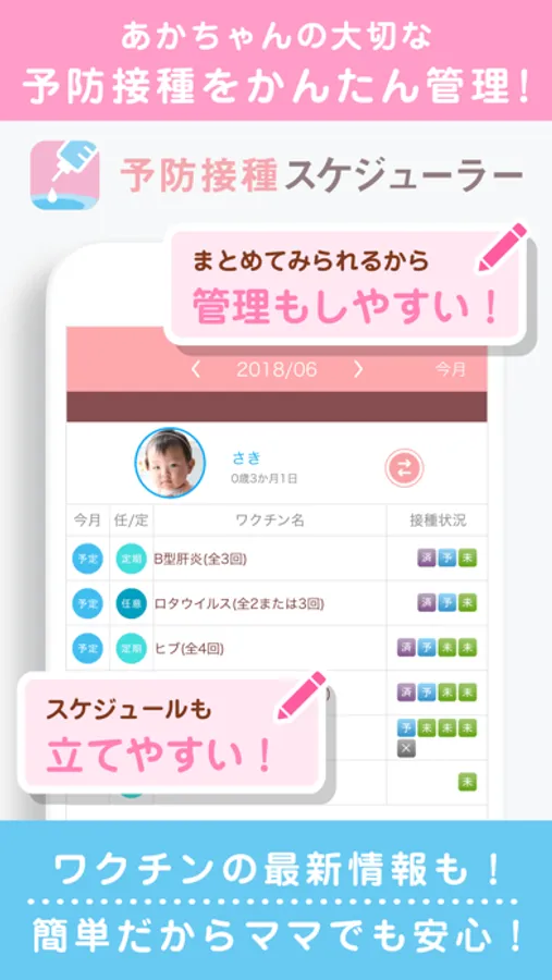 予防接種の通院予定をかんたん登録、かんたん管理!!
